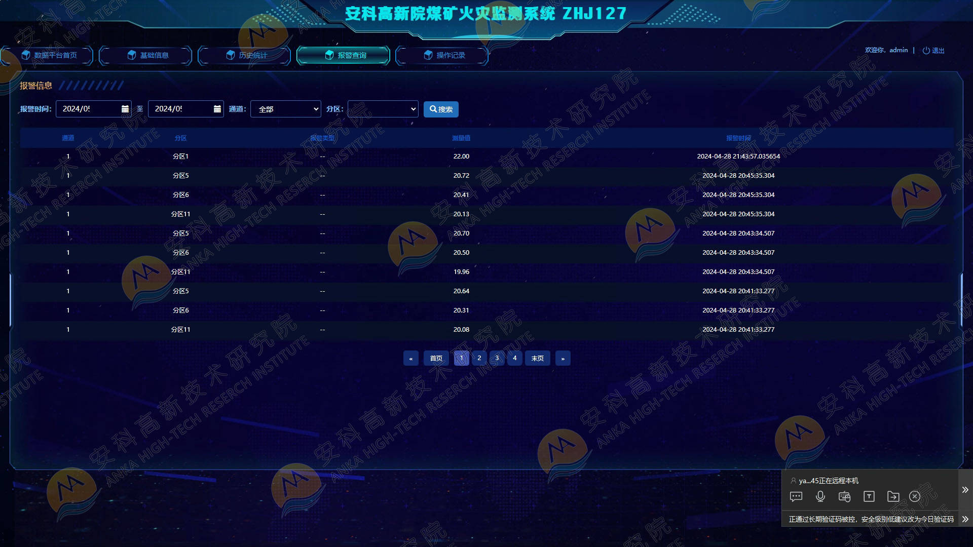 安科高新技术(河南)研究院有限公司自主研发的一套设备可完成对巷道火情、火灾状态的综合监测分析、智能预警、语音报警、自动灭火、自动降尘、安全疏散引导等系统功能。